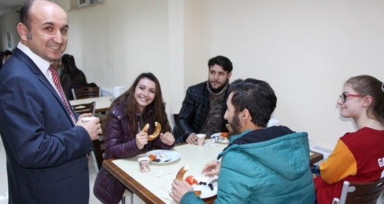 Günün 24 saati açık olan okuma salonunda ders çalışan öğrencilere anons yaptıran Rektör Orbay, yemekhaneye gelen öğrencilere beraberindeki Rektör Yardımcısı Prof. Dr. Kemal Polat ve diğer akademisyenlerle birlikte elleriyle simit, poğaça, kahvaltılık ve çay ikram etti. Kendi öğrencilik döneminde bu tür uygulamaların olmadığını belirten Prof. Dr. Orbay, “Zaman, mekan, ülkemizin imkanları değişiyor. İdarecilerin öğrencilerine yaklaşımları da değişiyor. Dolayısıyla genç arkadaşlarımız üniversitemizin varlık sebebi. Onların problemi bizim problemimiz” dedi.