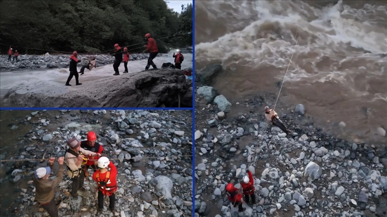 ????Dere üzerinden iple karşıya geçen ekipler, H.M'ye ulaştı.