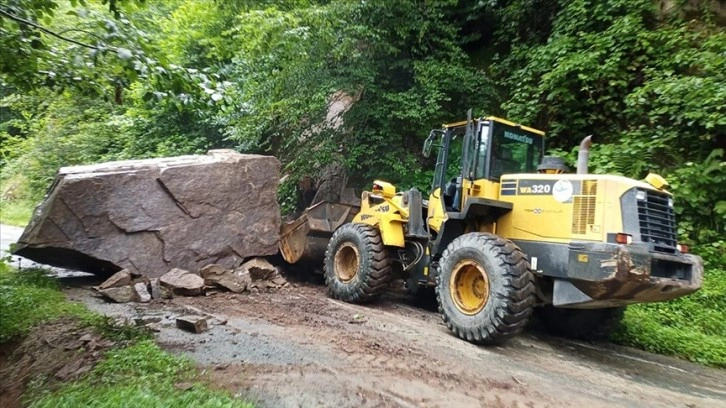 Ekiplerce yapılan çalışmanın ardından kaya kütlesi yoldan kaldırılarak, ulaşım yeniden sağlandı.