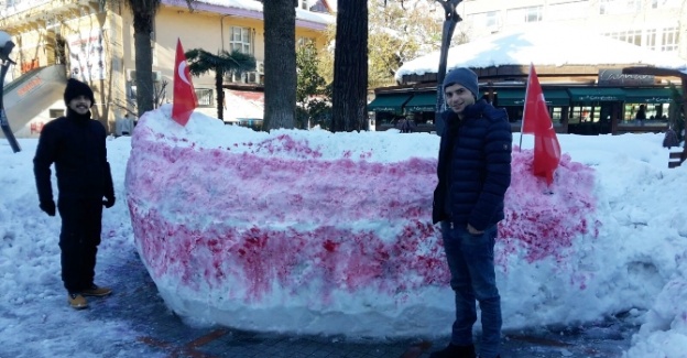 Rize Memişağa Parkı’nda ise alışılmışın aksine kardan adam yerine yapılan ’Kardan Taka’ sokak üzerinden geçenlerin ilgisini çekiyor.