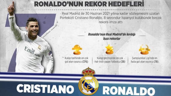 Real Madrid ile 30 Haziran 2021 yılına kadar sözleşmesini uzatan Portekizli Cristiano Ronaldo, 8 sezondur İspanyol kulübünde birçok rekora imza attı.