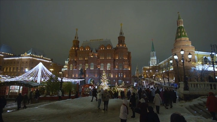 Moskova'daki tarihi Kızıl Meydan ve çevresindeki parklar, meydanlar, bazı caddeler ile binalar renkli ışıklar ve çam ağaçlarıyla süslendi.