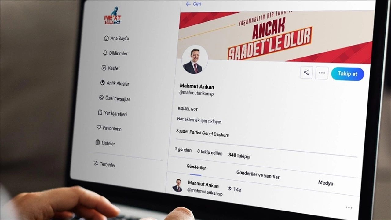Saadet Partisinden yapılan yazılı açıklamada, T3 Vakfı Mütevelli Heyeti Başkanı Selçuk Bayraktar'ın, siyasi parti genel başkanlarını NeXT Sosyal'e katılmaya davet ettiği anımsatılarak, Arıkan'ın "mahmutarikansp" şeklinde sosyal medya hesabı açtığı belirtildi.