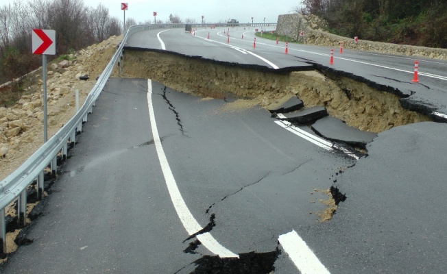 Akçakoca-Kocaali sahil yolu, sağanak yağış nedeniyle çöktü. Yaklaşık 3 metre çöken yol, ulaşıma kapatıldı.