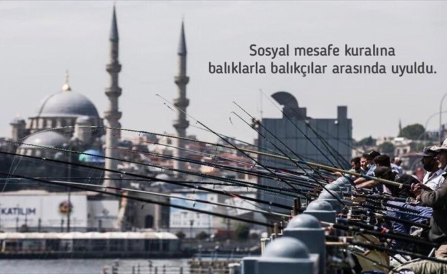 Sağlık Bakanı Fahrettin Koca, Twitter hesabından, "Sosyal mesafe kuralına balıklarla balıkçılar arasında uyuldu" ifadesinin yer aldığı, İstanbul'daki Galata Köprüsü'nde balık tutan vatandaşların fotoğrafını paylaştı.