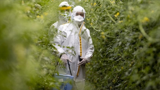 Hava sıcaklığının 35, nem oranının zaman zaman yüzde 90'lara ulaştığı kentte, tulumlarını giyen, maskelerin üzerine koruyucu siperlik takan ekip, tarlada, serada hasat yapanların adreslerine gidiyor.