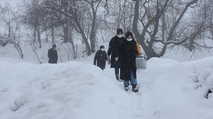 Karlı yolları aşarak en ücra yerleşim yerlerine kadar giden, araçların gidemediği bölgelere yürüyerek ulaşan sağlık ekipleri, kapı kapı dolaşarak vatandaşlara aşı hizmeti veriyor.