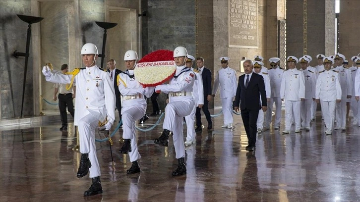 Aslanlı Yol'dan yürüyerek Atatürk'ün mozolesine gelen Ersoy ve beraberindekiler, buraya çelenk bırakarak saygı duruşunda bulundu.