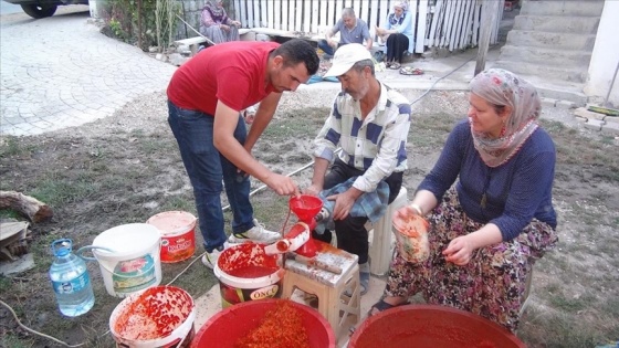 "Sakin şehirler" ağına (Cittaslow) üye ilçede komşular arasında sürdürülen yardımlaşma geleneği, kışlık salça yapımı için bir araya gelen kadınlar tarafından yaşatılıyor.