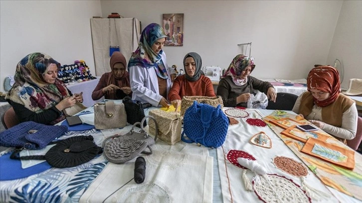 Halk Eğitim Merkezinden usta öğreticilerden destek alan 73 kadın, kanaviçe, örgü bebek ile iplikten çanta gibi hediyelik eşya üretiyor.