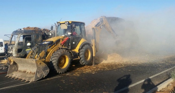 Olay, Diyarbakır-Siverek karayolu Pirinçlik Jandarma karakolu yakınlarında meydana geldi. Edinilen bilgilere göre, plakası ve sürücüsü öğrenilemeyen Siverek istikametine seyir halindeki saman yüklü kamyon, henüz belirlenemeyen bir nedenle alev aldı. Kamyondan yükselen dumanları fark eden sürücü aracı park edip can havliyle kendini dışarı attı. Yangını gören çevredekiler itfaiyeye haber verdi. Olay yerine gelerek yanan saman yüklü kamyona müdahale eden itfaiye ekipleri yangını yaklaşık 2 saatte kontrol altına aldı.