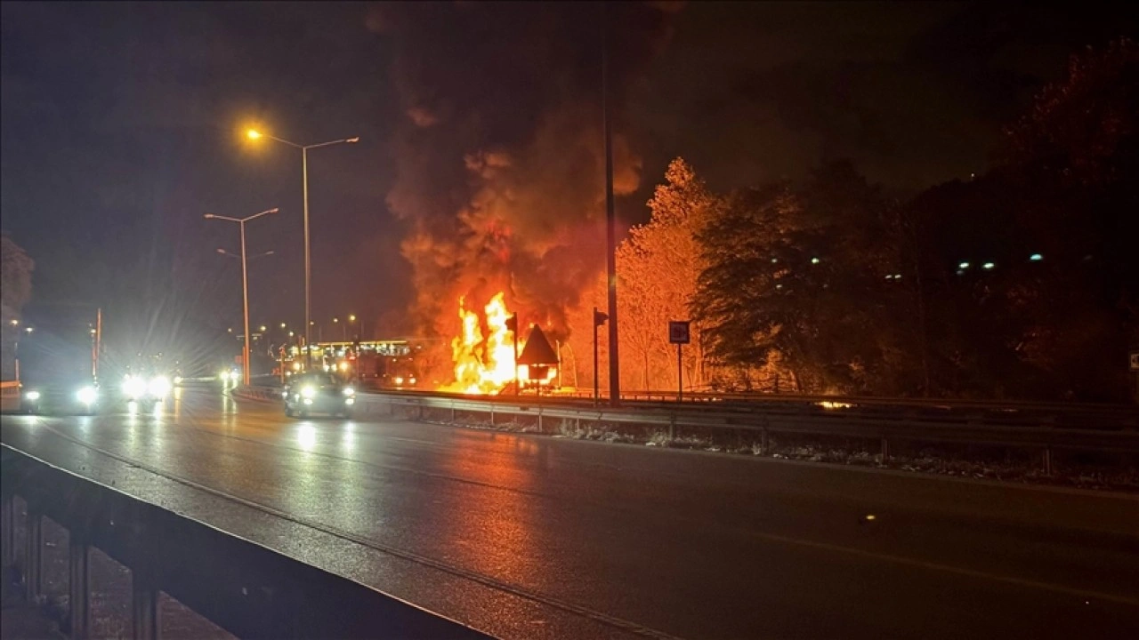 Frenleri tutmayınca yaklaşık 8 kilometre boyunca dorsesi yanarak ilerleyen tırdaki kimyasal madde ve boyalar yola saçılarak yandı. Şarampolde bulunan demir bariyerlere çarparak durabilen aracın sürücüsü kendisini dışarı attı. Yangın, yol kenarındaki ağaçlara da sıçradı.