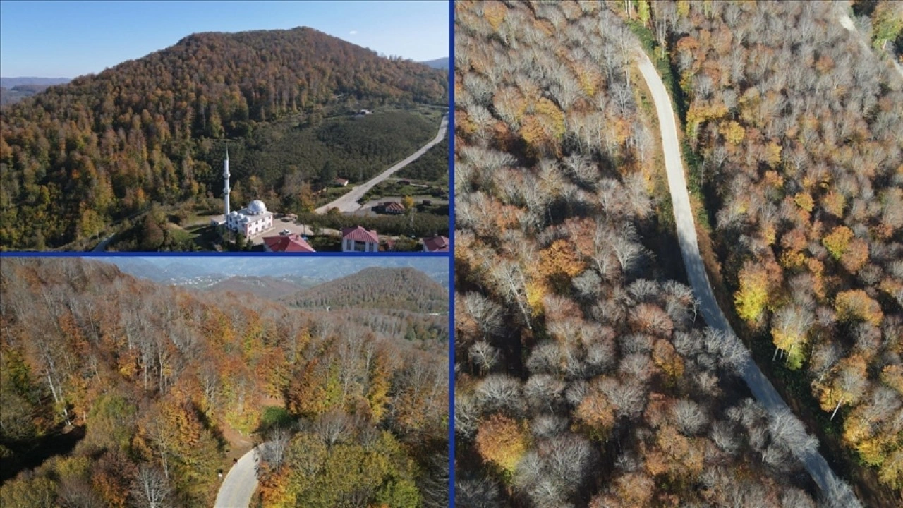 Gürgenlerin yoğun olduğu 1224 rakımlı Nebiyan Dağı'nı fındık bahçeleri sararken, ağaçlardan dökülen yapraklar, yüzeyde sarı bir örtü oluşturdu.