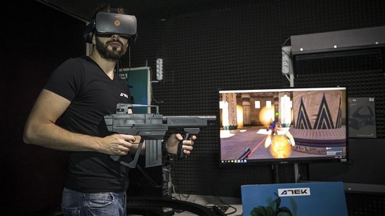 Atek Teknoloji Genel Müdürü Tanal Bal, AA muhabirine, geliştirdikleri Modulus isimli cihazla, sanal gerçeklik teknolojilerini kullananlar için hareket imkanı sağladıklarını söyledi.