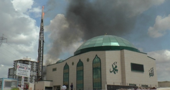 Cami inşaatında çalışan işçiler, yangının elektrik kontağından çıktığını belirtti.