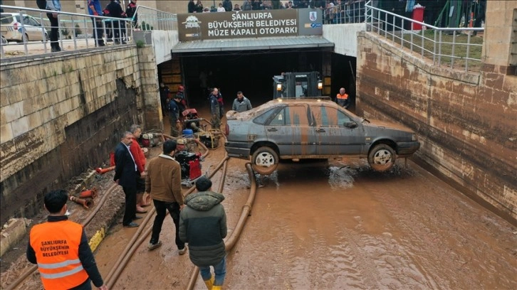 Şiddetli sağanağın ardından dere taşkınları sonucu yaşanan selin etkili olduğu noktalardan Şanlıurfa Arkeoloji Müzesi yanındaki kapalı otoparkta suyun önemli bölümü tahliye edildi.
