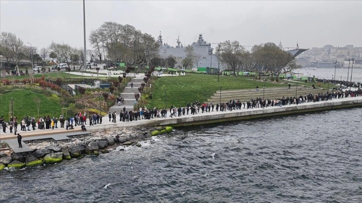 İçinde dünyanın ilk silahlı insansız hava aracının da (SİHA) yer aldığı gemiyi görmek isteyen çok sayıda ziyaretçi sabah saatlerinden itibaren Sarayburnu'na adeta akın etti.