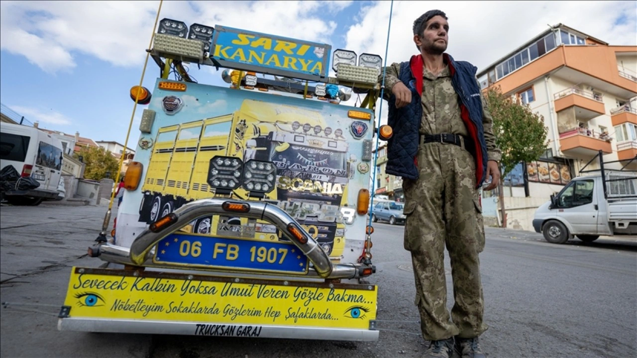 Mahallesinde "Akdereli Şafak" olarak tanınan fanatik Fenerbahçe taraftarı Özdemir, yıllar içinde yaptığı değişikliklerle kağıt topladığı aracını adeta modifiyeli bir kamyona dönüştürdü.