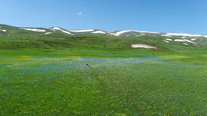 Yüksek karlı dağlarla çevrili ovalarda zirvelerde kış yaşanırken meralarda çiçekler açmaya başladı.