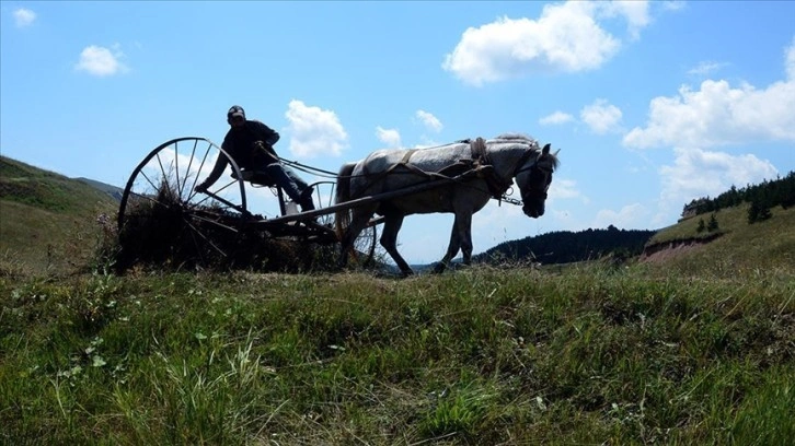 Çiftçilerden Göktürk Öztürk, uzun kış mevsiminin ardından 2 bin 200 rakımda ot biçimine başlandığını söyledi.