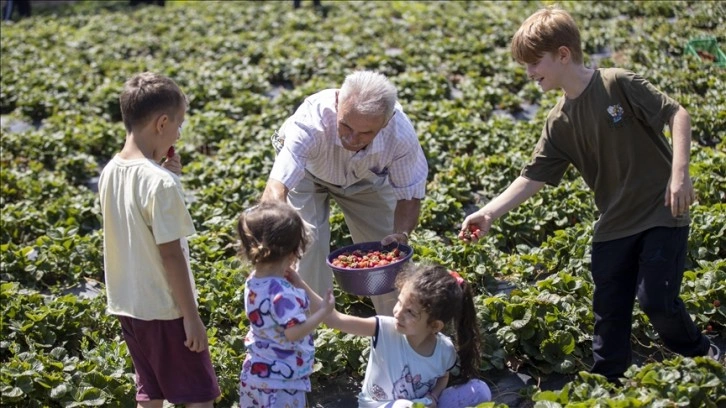 Yaklaşık 2 bin dönüm arazide yetiştirilen çileğin hasat etkinliğine ailece katılanlar, elleriyle topladıkları meyveyi satın almanın yanı sıra ürünün nasıl yetiştirildiği hakkında bilgi sahibi oluyor.