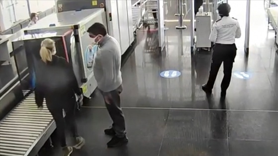 Güvenlik Kamera kayıtlarında, 5 Aralık’ta İstanbul Havalimanı Dış Hatlar Giden Yolcu katına gelen Korkmaz’ın kontrol noktasından geçişi görülüyor.