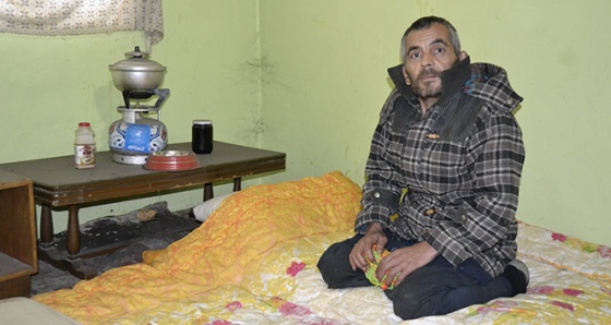 Suyunu, bölgede bulunan kaynak çeşmelerinden dolduran ve piknik tüpünde yardımlardan gelen erzakları pişiren Özkan, örümcek ağlarıyla dolu, bakteri yuvası evde her gün ölümle yüz yüze geliyor.