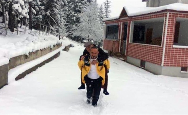 ORDU (AA) - Ordu'nun Gölköy ilçesinde rahatsızlanan şehit babası Mehmet Mert, 112 acil servis görevlisi tarafından ambulansa kadar sırtında taşınarak hastaneye ulaştırıldı.