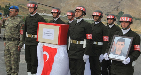 Feryatlar yakan şehit ailesini kadın komutanlar teselli etmeye çalışırken, doktorlar ise hazırda bekletildi. Saygı duruşunda bulunulmasıyla birlikte şehit güvenlik korucusu Sebahattin Hayva’nın naaşı tören alanına getirilerek özgeçmişi okundu. Yapılan duanın ardından şehidin naaşı toprağa verilmek üzere il merkezine bağlı Üzümcü köyüne uğurlandı.