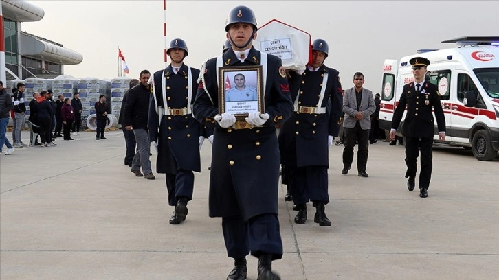 Şehidin Türk bayrağına sarılı tabutu, Ağrı Ahmed-i Hani Havalimanı'ndan alınarak kortej eşliğinde törenin yapılacağı Ulu Cami'ye getirildi.