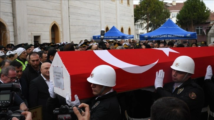 Şehit polis memuru Orhan Mutlu'nun Türk bayrağına sarılı naaşı, Havza Bölge Trafik İstasyon Amirliği önünde yapılan tören sonrası Vezirköprü ilçesine getirildi.