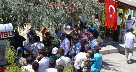 Şehidin baba evine Türk bayrağı asılırken, diyanet görevlileri tarafından Kur’an-ı Kerim okundu. 2 ambulans da evin önünde hazır bekletildi.