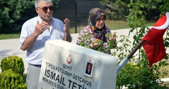 12 yıl önce şehit düşen damadı Topçu Astsubay Üstçavuş İsmail Tetik’i rahmetle anan kayınpeder Özer, “Ne diyeyim, diyecek bir şey de bulamıyorum. 12 sene önce Cudi Dağı’nda şehit düştü. Elleri kırılsın ne diyeyim. Allah belalarını versin” ifadelerini kullandı.