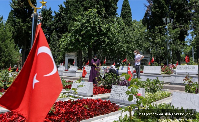 Sabahın erken saatlerinden itibaren şehitliğe ziyarete gelen şehit yakınları dualar ve Kur'an-ı Kerim okudu.