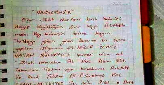Mardin’in Nusaybin ilçesinde terör örgütü tarafından tuzaklanan el yapımı patlayıcının infilak etmesi sonucu şehit olan Giresunlu Uzman Çavuş Süleyman Kul’un şehit olmadan önce duygulandıran bir vasiyet bıraktığı ortaya çıktı. Şehidin bıraktığı vasiyet mektubu şöyle: