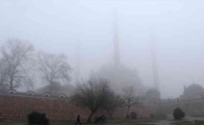 Kentin simgesi Selimiye Camisi sis altında gözden kayboldu. Tarihi köprüler siste güzel görüntüler oluşturdu.