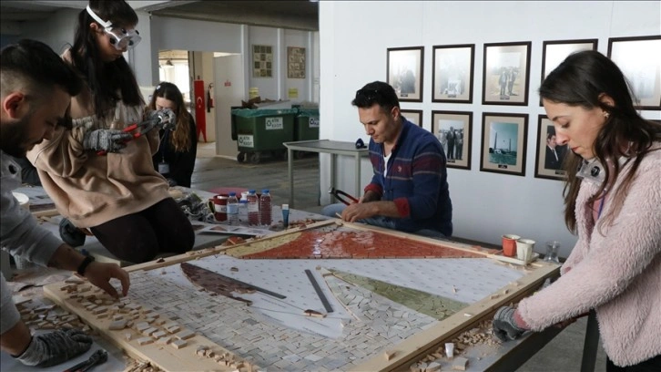 ÇOMÜ'den yüksek lisans öğrencisi Sedef Aslan'ın tasarımını üstlendiği mozaik eserin yapımı, Çan ilçesindeki Kaleseramik firmasına ait Atölye Kale ve ÜR-GE departmanlarında sürüyor.