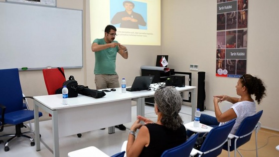 İşaret dili bilmeyenlere kendi imkanıyla ulaşıyor