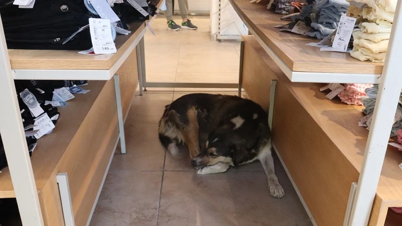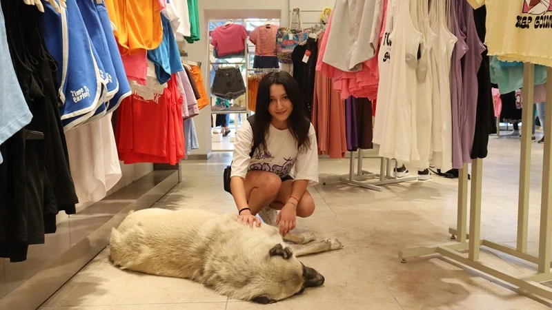 Mağaza çalışanı Zeynep İndistan da sahipsiz hayvanların sıcaktan bunalınca içeri girip serinlediğini ve müşterilerin de zaman zaman onları sevdiğini söyledi.