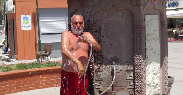 Balıkesir’in turizm bölgesi Edremit Körfezi’nde hava sıcaklığı 40 dereceyi aşınca, sıcaktan bunalan vatandaşlar sokak çeşmelerine hortum takıp sokak ortasında duş aldı.