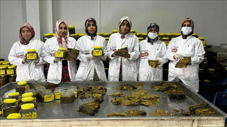 Civar köylerde toplanan tayfi üzümü yaprakları, tesiste işlenip "Mavit" markasıyla paketleyerek marketlere satılıyor.