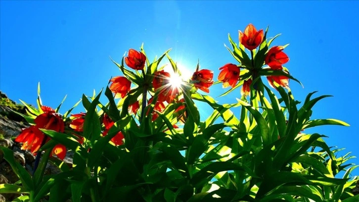 Ters lalelerin 20 gün boyunca yaşayabildiği aktarılan açıklamada, çiçeğin ilkbaharda dağları renklendirdiği aktarıldı.