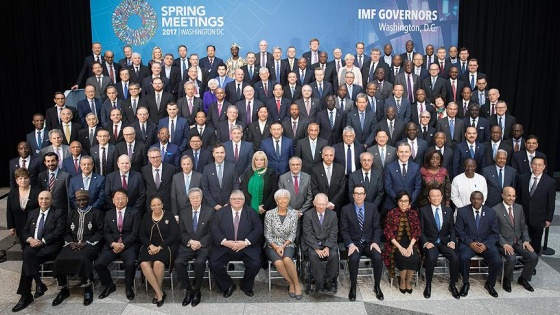 IMF-Dünya Bankası Bahar Toplantıları ve G20 Oturumları kapsamında ABD'nin başkenti Washington'da bulunan Şimşek, "IMF Guvernörleri Aile Fotoğrafı" çekiminde yer aldı.