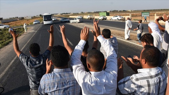 Şanlıurfa'daki 20. Zırhlı Tugay Komutanlığından çıkış yapan ve askeri personel taşıyan 5 otobüslük konvoy, güvenlik önlemleri altında sınır hattındaki Akçakale ilçesine ulaştı.