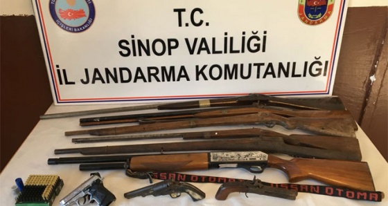 Edinilen bilgiye göre, bir süredir istihbarat çalışması yürüten Gerze İlçe Jandarma Komutanlığı ekiplerince, ilçe merkezi ve ilçeye bağlı bir köydeki iki evde arama yapıldı. Jandarma dedektör arama köpeği Cudi'nin de katıldığı arama sırasında tarihi eser olduğu tahmin edilen ve seri numarası bulunmayan ruhsatsız 5 adet dolma av tüfeği ile 1 adet ruhsatsız otomatik av tüfeği, 1 adet tabanca, 2 adet eski dolma tabanca ve 60 adet fişek ele geçirildi. Olayla ilgili gözaltına alınan bir kişi ifadesinin alınması ardından serbest bırakıldı. Olayla ilgili başlatılan soruşturma sürüyor.