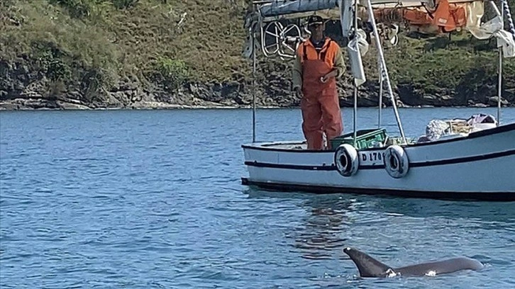 Kentin iç liman mevkisinde denize açılan bir balıkçı, limana dönüşe geçtiği sırada teknesinin yanına yunusun yaklaştığını fark etti.