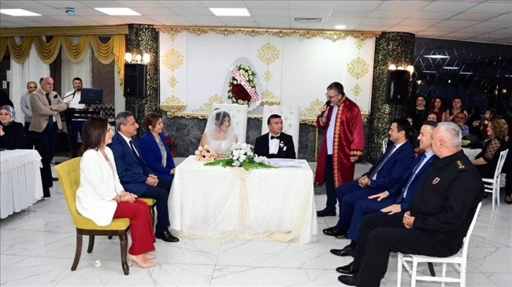 Evlenme cüzdanını gelin Şehri Elmacı'ya veren Vali Karaömeroğlu, çifte ömür boyu mutluluklar dileyerek "Bu genç çiftimizin en mutlu gününü paylaşmak ve nikahlarına şahitlik etmek için bir araya toplandık. Allah şahitliğimizi kabul, hayırlı ve uğurlu eylesin. Sizlere iki cihanda sağlık, mutluluk ve saadetler diliyorum. Yasaların en yücesi anayasa, sözleşmelerin en yücesi evlilik sözleşmesidir. Bu kutsal evlilik sözleşmesini de ailenin bireyi olan gelin kızımıza takdim ediyorum ve hayırlı uğurlu olsun." diye konuştu.