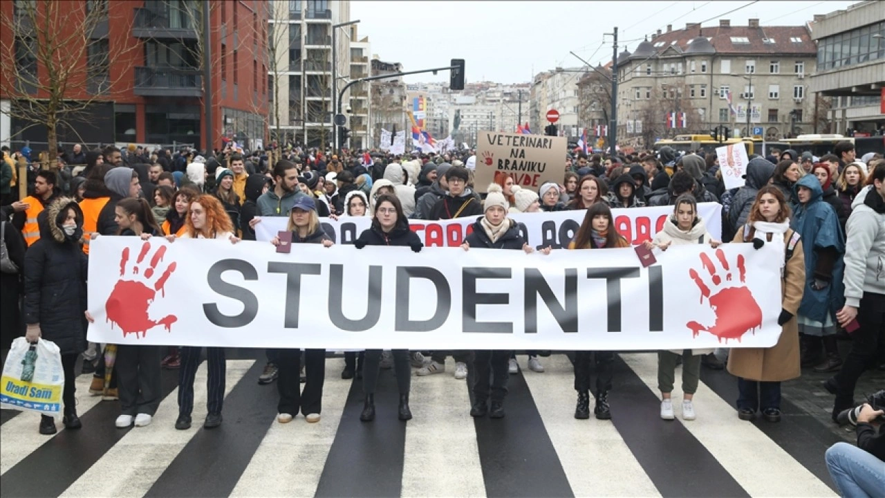 Sırbistan'da hükümete tepkili binlerce öğrenci başkentin önemli kavşağını trafiğe kapattı