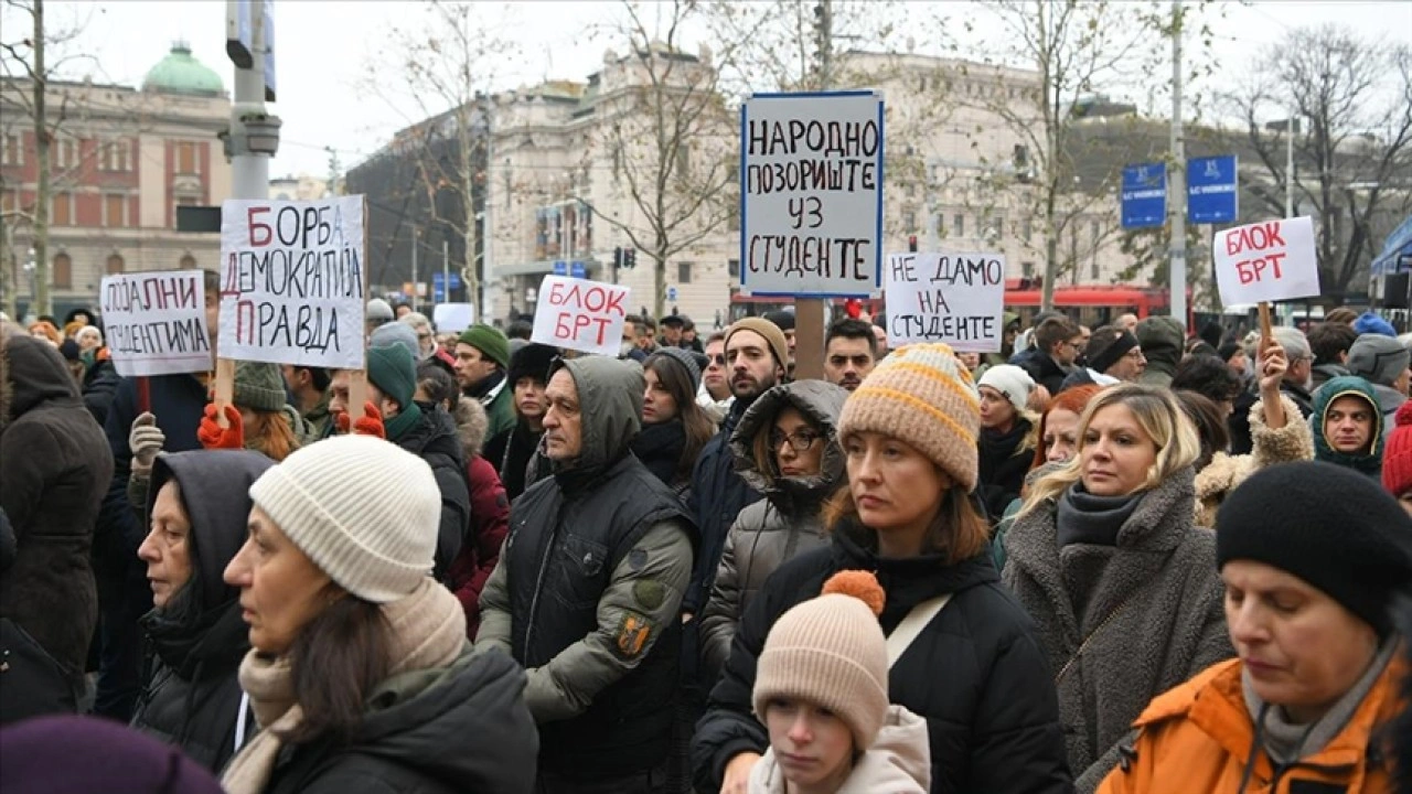 Novi Sad'daki tren istasyonunda 1 Kasım 2024'te beton sundurmanın çökmesiyle meydana gelen ve 15 kişinin hayatını kaybettiği kazanın ardından ülke genelinde süren protestolara dahil olan üniversite, yüksekokul ve lise öğrencileri ile onlara destek veren vatandaşlar, tepkilerini göstermek için Belgrad'da bulunan resmi kurumların önündeki yolları 15 dakikalığına trafiğe kapattı.