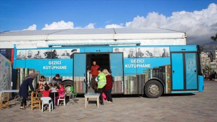 Bakanlık tarafından deprem bölgesine gönderilen 36 gezici kütüphaneden biri olan Şırnak İl Halk Kütüphanesine ait otobüs, İskenderun Millet Parkı'ndaki çadır kente gelerek kapılarını afetzede çocuklara açtı.
